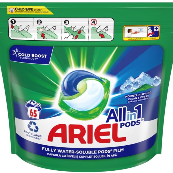Ariel All In 1 Mountain Spring gélove tablety na pranie 65ks
