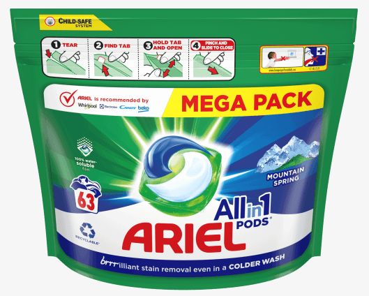 Ariel Mountain Spring gélove tablety na pranie 63ks sáčok