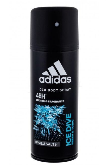 Pánsky deodorant Adidas Ice dive fresh power so sviežou vôňou je určený pre mužov, ktorí aktívne športujú. Chladivá vôňa poskytuje pocit sviežosti počas celého dňa. Predstavuje účinnú ochranu pred potom. Neutralizuje zápach. Deodorant aplikujte priamo na pokožku vo vzdialenosti 20cm. Nádoba je pod tlakom. Nevystavujte slnečnému žiareniu a teplotám vyšším ako 50°C. Zabráňte kontaktu s očami. V prípade ich zasiahnutia, oči vypláchnite veľkým množstvom vody. Ak podráždenie oči pretrváva, vyhľadajte lekársku pomoc. Uchovávajte mimo dosahu detí. Objem balenia 150ml.