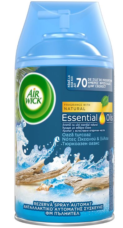 Air Wick Turquoise Oasis náplň prináša dlhotrvajúcu sviežosť a príjemnú vôňu do vášho domova. S exotickou a upokojujúcou kombináciou vôní Turquoise Oasis vytvára pocit čistoty, pohody a relaxu v každej miestnosti.