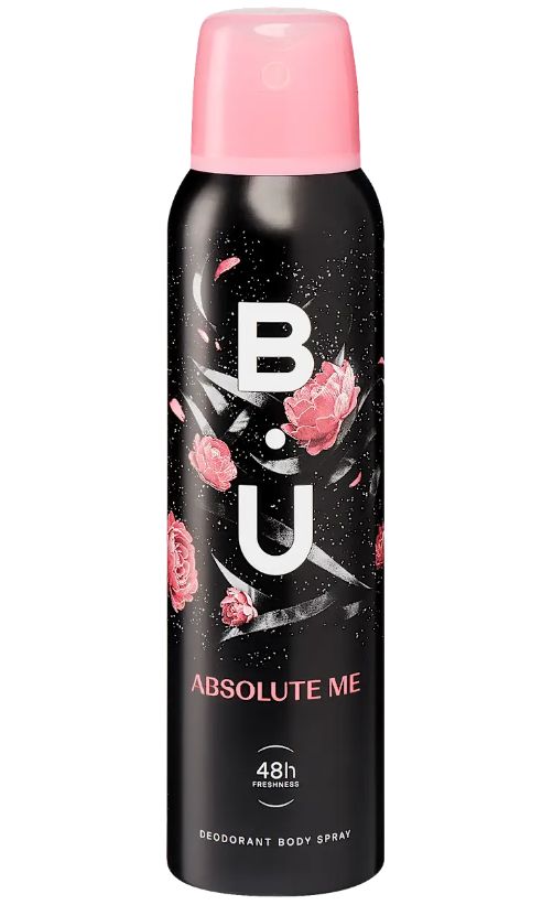 B.U. dezodorant sprej Absolute Me prepožičia vašej pokožke romantickú kvetinovo ovocnú vôňu. Vôňa sa skladá z ovocného mixu hrušky, jablka a mandarínky. Srdce je tvorené vôňou frézie, fialky a santalového dreva. Na záver vás očarí letmý dotyk jantáru, karamelu a pižma.Objem balenia 150ml.