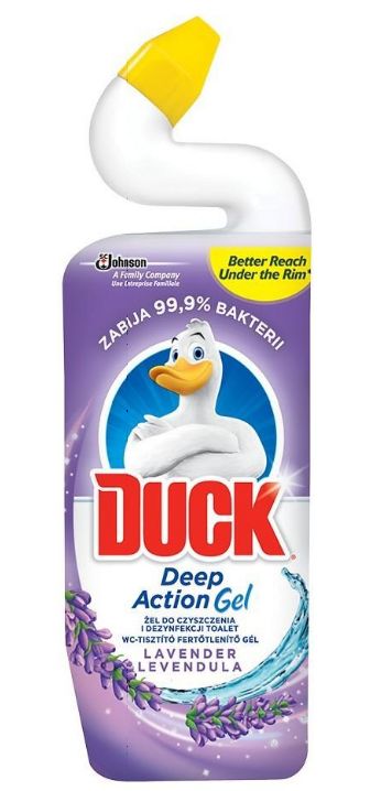 Duck Deep Action Gel okamžite čistí toaletu a zároveň ničí 99,9 % choroboplodných zárodkov a baktérií .