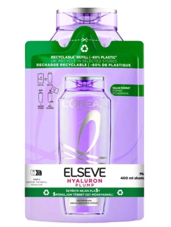 Elseve DUOPACK šampón na vlasy Hyaluron Plump 400ml + náhradná náplň do šampónu 250ml