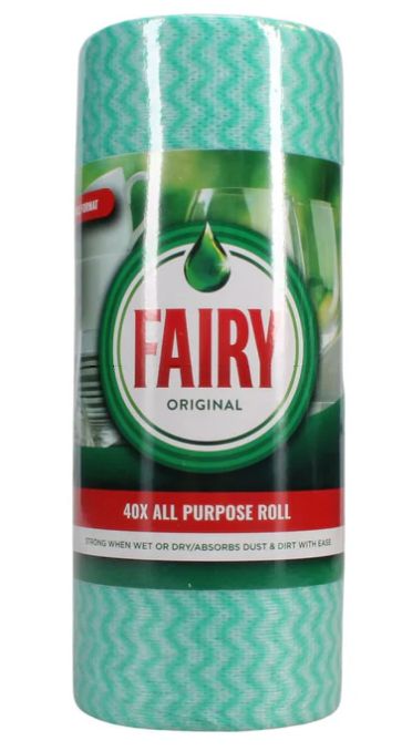 Táto univerzálna rolka Fairy je ideálna na čistenie rozliatych látok, či už sú mokré alebo suché. Táto všestranná utierka je ideálna na použitie v celej domácnosti a dodáva sa so 40 listami na absorbovanie nečistôt z akéhokoľvek povrchu. Či už si čistíte boky alebo utierate rozliate nápoje, je to skvelá alternatíva ku kuchynskej rolke.