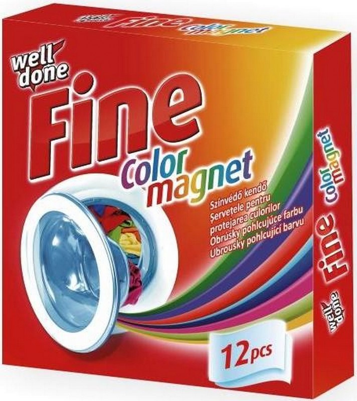 Obrúsky pohlcujúce farbu Fine Color zabraňujú prefarbeniu a zosiveniu oblečenia pri praní. Pred praním vložte obrúsok do bubna práčky medzi oblečenie. K praniu tmavých odevov, ktoré neudržujú farbu použite 3 až 4 obrúsky. Po skončení prania vyberte obrúsok. Je vhodné aj na ručné pranie. Džínsové oblečenie sa odporúča prať zvlášť. Uchovávajte pred otvoreným ohňom a mimo dosahu detí. Obsah balenia 12+6ks.