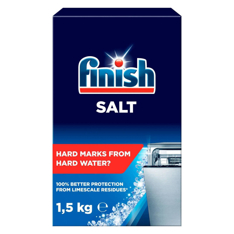 FINISH Soľ 1,5 kg Finish regeneračná soľ s veľkými granulami pomáha predchádzať nebezpečnému usadzovaniu vodného kameňa na riade aj v umývačke. Ide o špeciálnu soľ, ktorá bola vyvinutá na použitie v u…