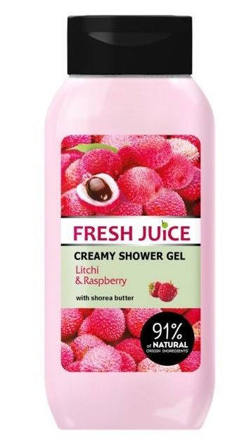 Fresh Juice krémový sprchový gél Litchi&Raspberry dokonale čistí pokožku a dodáva jej vitamíny, hladkosť, ale nevysušuje ju. Výťažok voňavej maliny a litchi posilňuje pokožku. Vitaminový komplex a výživné krehké maslo zanechávajú pokožku jemnú a hedvábnu. Zvodná aróma evokuje krásu a harmóniu zeme vychádzajúceho slnka. Objem balenia 400 ml.