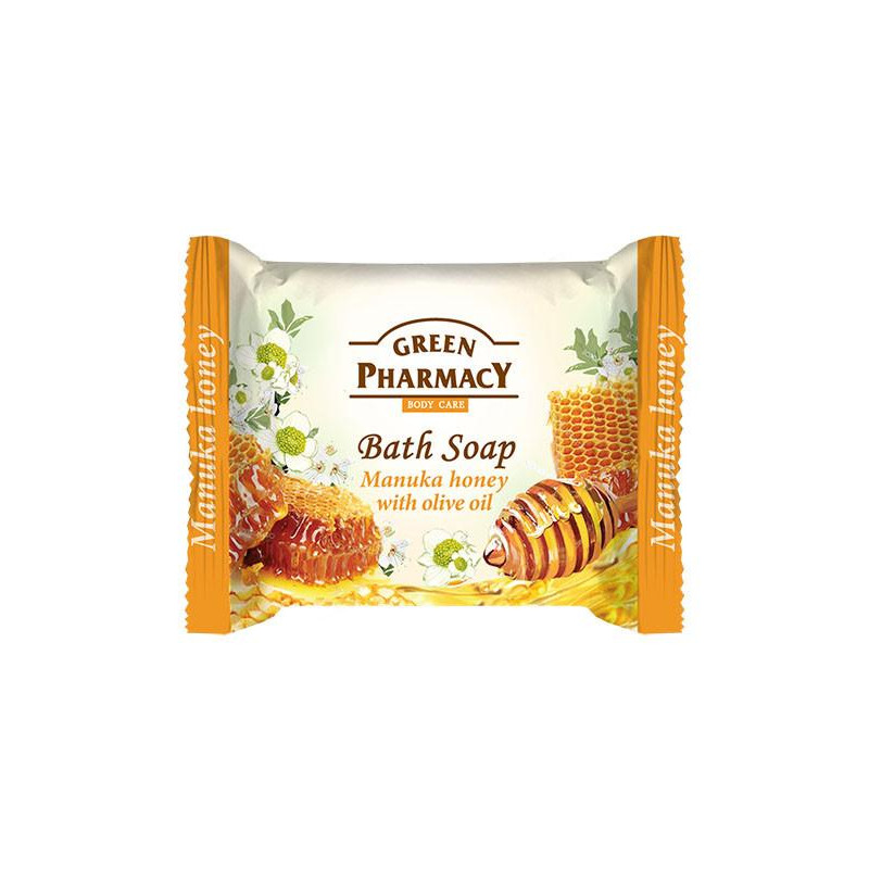 Jedinečné toaletné mydlo Green Pharmacy s prírodnými zložkami efektívne čistí, hydratuje, zvláčňuje pokožku a zlepšuje jej ochranné funkcie. Manuka med je jedným z najznámejších medicínskych medov s vysokými antioxidačnými vlastnosťami a mimoriadnou antibaktérialnou silou. Získava sa od včiel, ktoré zbierajú nektár večne zelených divokých kríkov a stromov palmínu metlatého, známy aj pod menom Tea Tree, domorodými obyvateľmi nazývaný Manuka vyskytujúci sa vo voľnej prírode na kopcoch a údoliach Nového Zélandu. Ide o jediný druh medu s niekoľko násobne vyšším obsahom tejto zložky (od 30 do 800 mg/kg) v porovnaný s bežným medom ( 3,1mg /kg). Mydlo s medom jemne čistí, hydratuje a zvláčňuje pokožku, zlepšuje jej ochranné funkcie. Manuka med má silný antibakteriálny účinok, a olivový olej zvlhčuje pokožku.