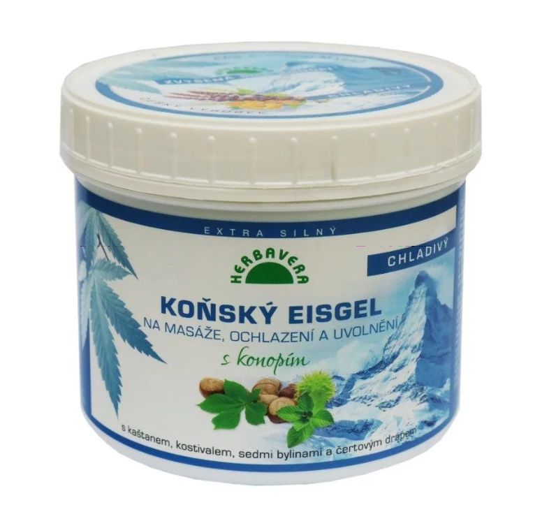 Konský EISGEL je chladivý gél na svaly a kĺby určený na rýchlu úľavu pri bolesti, opuchoch a preťažení pohybového aparátu. Vďaka obsahu mäty a mentolu má intenzívny chladivý efekt, ktorý pomáha zmierniť bolesť, znižovať opuchy a prináša okamžité osvieženie. Obsahuje konopný olej lisovaný za studena, pagaštan konský, kostihoj a čertov pazúr, ktoré podporujú regeneráciu pokožky, svalov a šliach.
