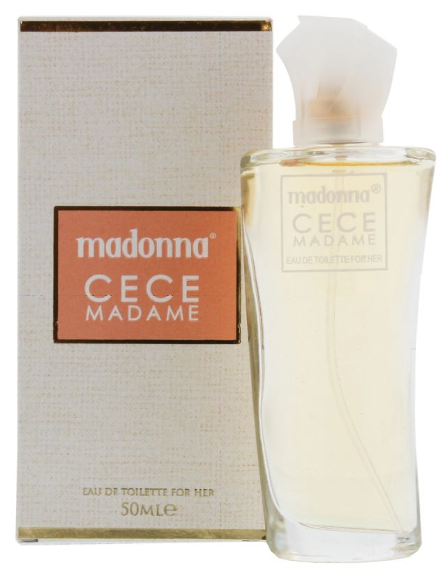 Madonna Cece Madame Eau de Toilette 50 ml je elegantná ženská vôňa, ktorá kombinuje jemné kvety, ovocné tóny a teplé drevité akordy. Vrchné tóny obsahujú pomarančový kvet, škoricu a malinový akord, stredné tóny sú tvorený ružou, pačuli a pomarančovým kvetom a základné tóny nesú vonu kadidla, pižma a ambry. Toaletná voda je ideálna pre denné nosenie aj večerné príležitosti, keď chcete zanechať jemný, no zmyselný dojem. Sprejová fľaštička o objeme 50 ml je praktická a elegantná vhodná aj ako darček pre osobu, ktorá oceňuje štýl a ženskosť.