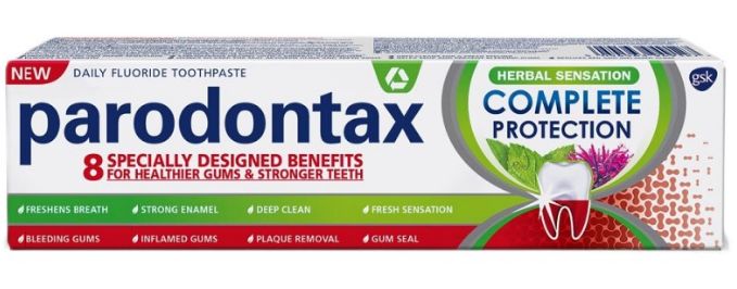 Zubná pasta Parodontax Complete Protection Herbal obsahuje bylinné výťažky zo zázvoru, mäty a pyretra pre pocit sviežosti a čistoty. Vďaka svojmu špeciálne vyvinutému zloženiu pomáha predchádzať krvácaniu ďasien a udržiavať silné zuby.Objem balenia 75ml.