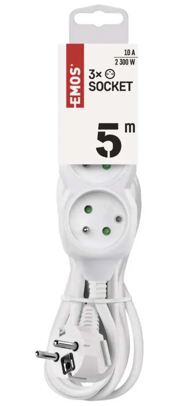 Predlžovací kábel 5m / 3 zásuvky / biely / PVC / 1 mm2