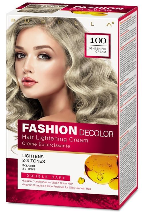 Zosvetľujúci krém.Krémová dlhotrvajúca farba na vlasy Rubella Fashion Color zvýrazňuje optický efekt farby vlasov. Ryžový proteín v jeho zložení pomáha zachovať viac farebných pigmentov vo vlasoch a robí farbu vlasov žiarivejšou a lesklejšou. Fixačný balzam je obohatený o komplex vitamínov a keratín, ktoré poskytujú hĺbkovú a dlhotrvajúcu výživu. Keratín je jednou z hlavných stavebných zložiek vo vlasovej štruktúre. Pomáha posilňovať a vyrovnávať vlasy. Výsledkom sú žiarivé vlasy s intenzívnou farbou.