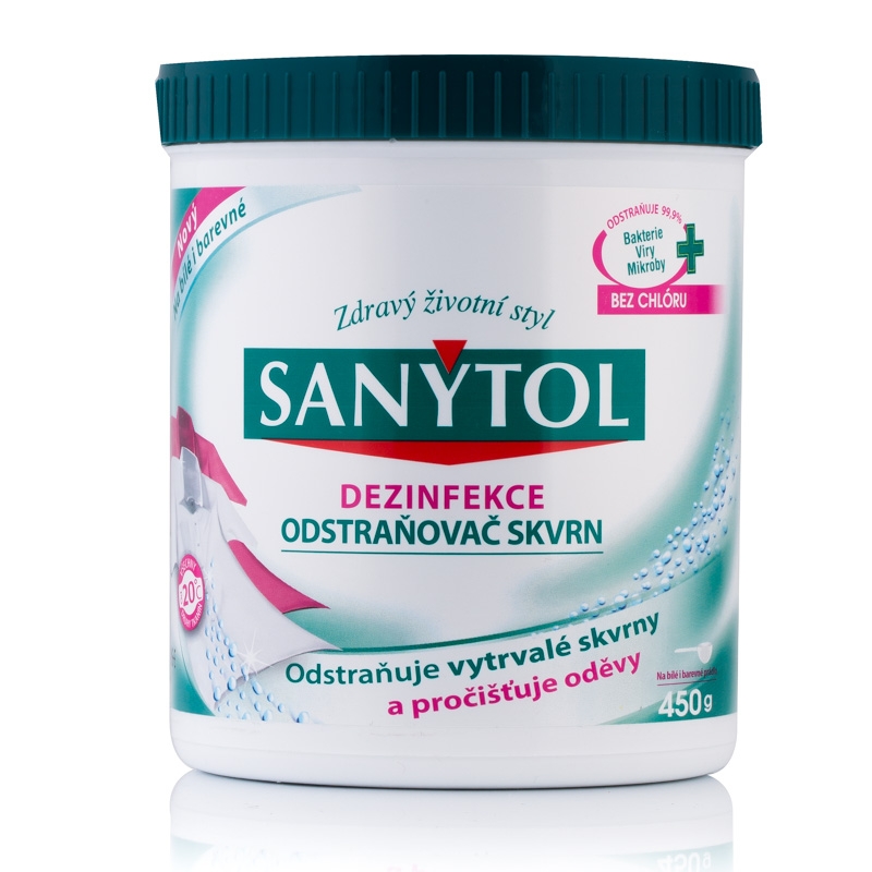 Sanytol univerzálny dezinfekčný odstraňovač škvŕn je účinný práškový prípravok, ktorý spoľahlivo odstraňuje aj tie najodolnejšie škvrny a zároveň dezinfikuje textílie. Eliminuje baktérie, vírusy a plesne, čím zabezpečuje maximálnu hygienu bielizne. Vhodný je pre biele aj farebné oblečenie, do práčky aj na ručné namáčanie. Výhody a vlastnosti