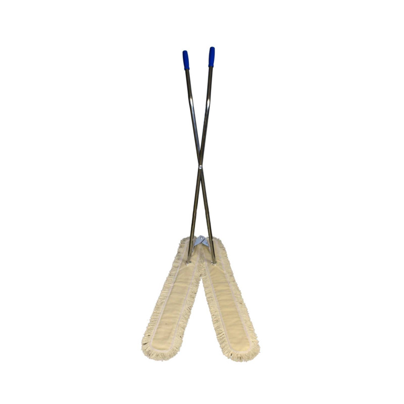 V MOP KOMPLET Roztvárateľný mop na suché upratovanie veľkých plôch. Skladá sa z kovových rukovätí a spodného drôteného dvojitého držiaka, ktorý je možné roztvoriť do šírky 30-160 cm. V cene kompletu sú aj 2 mopy pre V mop s dĺžkou 100 – 110 cm – na každé rameno jeden mop. Najčastejšie využitie je na veľkých plochách napr. telocvične, sály a pod. Cena je za 1ks/komplet