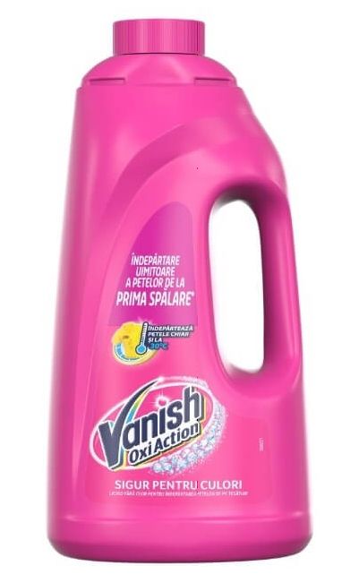 Odstraňovač škvŕn Vanish účinne odstraňuje špiny od čaju, kávy a vína. Neobsahuje chlór, a preto je šetrný k farbám a tkaninám. Pre dosiahnutie najlepších výsledkov nalejte Vanish priamo na škvrnu a zvyšok dávky pridajte do prania k praciemu prostriedku. 100ml na jedno pranie – nechajte pôsobiť maximálne 10 minút po aplikácií na škvrnu. Pre ručné pranie použite 100ml prípravku na 10l vody – doba pôsobenia maximálne 1 hodina. Vhodný na vlnu, hodváb a iné jemné a farebné tkaniny. Je účinný v studenej aj teplej vode. Nepoužívajte na kovové časti tkanín a odevov. Vyčistenú tkaninu nevystavujte priamemu slnku. Nádobu uchovávajte na chladnom mieste. Po použití si dôkladne umyte ruky. Obsahuje peroxid vodíka. Ak máte citlivú pokožku, používajte rukavice. Zabráňte kontaktu s očami. V prípade zasiahnutia, oči poriadne vypláchnite dostatočným množstvom vody. Uchovávajte mimo dosahu detí. Objem balenia 2l.