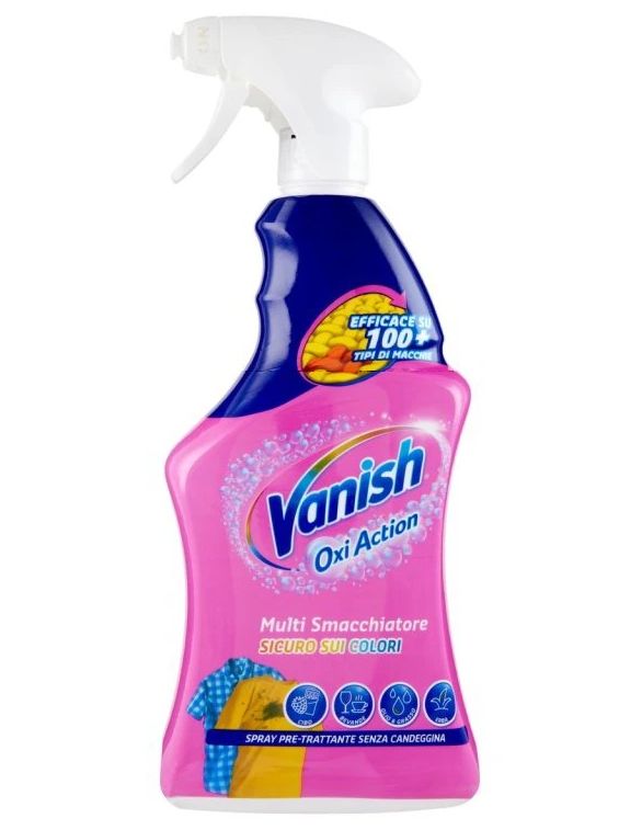 Vanish Oxi Action Spray je účinný pomocník pri odstraňovaní škvŕn z farebného prádla. Jeho inovatívna Oxi Action formula rýchlo a efektívne bojuje proti škvrnám od jedla, nápojov, make-upu či trávy, bez poškodenia farieb tkanín.