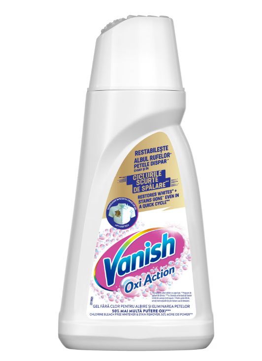 Odstraňovač škvŕn Vanish účinne odstraňuje špiny od čaju, kávy a vína. Zosvetľuje až o 3 odtiene. Neobsahuje chlór, a preto je šetrný k farbám a tkaninám. Pre dosiahnutie najlepších výsledkov nalejte Vanish priamo na škvrnu a zvyšok dávky pridajte do prania k praciemu prostriedku. 100ml na jedno pranie – nechajte pôsobiť maximálne 10 minút po aplikácií na škvrnu. Pre ručné pranie použite 100ml prípravku na 10l vody – doba pôsobenia maximálne 1 hodina. Vhodný na vlnu, hodváb a iné jemné a farebné tkaniny. Je účinný v studenej aj teplej vode. Nepoužívajte na kovové časti tkanín a odevov. Vyčistenú tkaninu nevystavujte priamemu slnku. Nádobu uchovávajte na chladnom mieste. Po použití si dôkladne umyte ruky. Obsahuje peroxid vodíka. Ak máte citlivú pokožku, používajte rukavice. Zabráňte kontaktu s očami. V prípade zasiahnutia, oči poriadne vypláchnite dostatočným množstvom vody. Uchovávajte mimo dosahu detí. Objem balenia 1l.