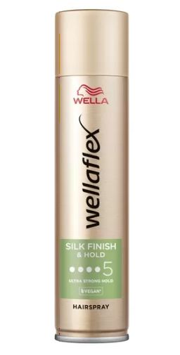 Wellaflex lak na vlasy 250 ml – Silk Finish & Hold 5 poskytuje stredne silnú až silnú fixáciu účesu s dôrazom na jemný a hladký finiš vlasov. Lak udržiava vlasy dlhotrvajúco tvarované, lesklé a prirodzene pružné, bez zlepenia alebo tvrdého efektu.